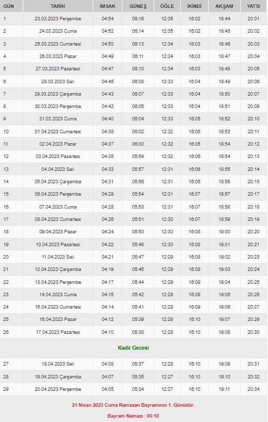Ramazan ayı, tüm Müslümanlar için önemli ve kutsal bir aydır. Her yıl olduğu gibi bu yıl da İmsakiye 2023 ile birlikte, iftar saatleri, sahur vakti, imsak vakti ve teravih namazı saati gibi bilgileri içeren detaylı bir takvim yayınlandı.