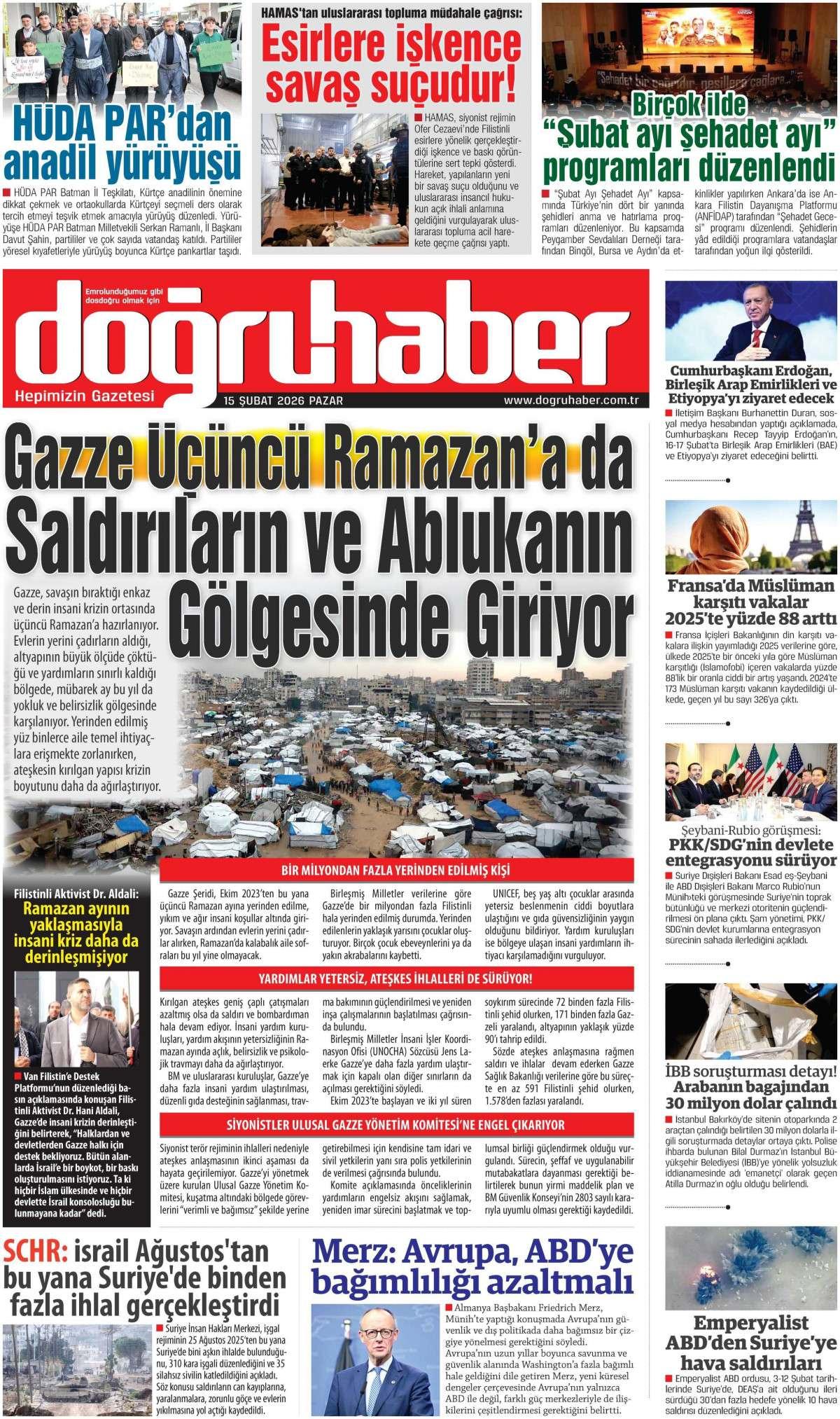 Doğru Haber Gazetesi 16 Şubat 2026 Günü Gazete Manşetleri