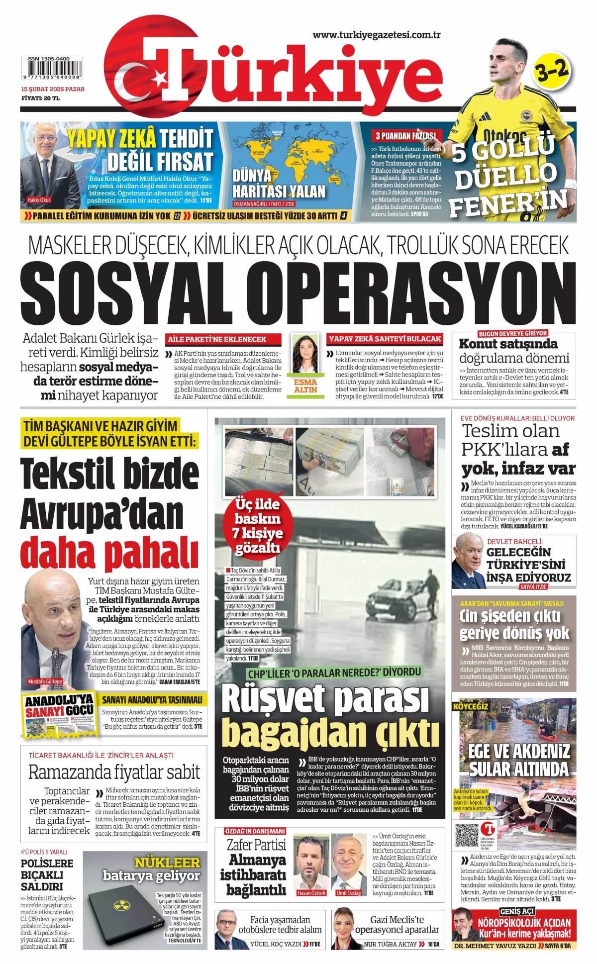 Türkiye gazetesinin 16 Şubat 2026 tarihli gazete manşetlerine göz atın, en son gelişmeler ve öne çıkan haberlerle Türkiye'nin gündemini takip edin!