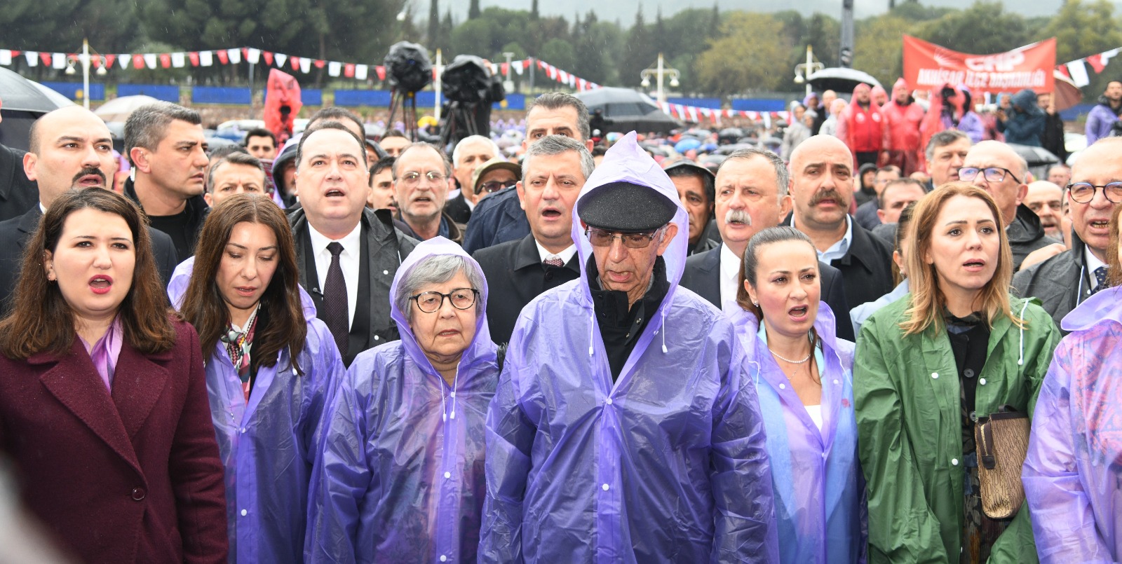 Cumhuriyet Halk Partisi Lideri Özel, “Hepiniz hoş geldiniz. Hep söylüyorum; 15 gün görmesem burnumda, kardeşim Barış’ı görmemiş gibi tüten dumanlı Spil Dağı’nın eteklerinde, yaşadığım ilçede, çok sevdiğim ve üzerimde dünya kadar emeği olan çok kıymetli yol arkadaşlarımla, hemşerilerimle buluşmanın büyük gururunu yaşıyorum. Hepiniz hoş geldiniz, şeref verdiniz. Aşağıdan böyle görünmüyor. Yukarıya çıkıp inen herkes aynı şeyi söylüyor. Bütün meydan yoğun yağışa rağmen tıklım tıklım dolu. Bu yağmurun altında şemsiyeleriyle, yağmurluklarıyla bizleri bekleyenlere, izleyenlere, güç verenlere; iyi günümüzde bizimle olanlara, kötü günümüzde hiç yalnız bırakmayanlara ve yürüdüğünüz yola inanan, arkamızda duran, nereye geldiysek üzerimizde hakkı olan hakkı ödenmez Manisalılara selam olsun. Hepinizi sevgiyle selamlıyorum” dedi. Özel, şunları söyledi:
