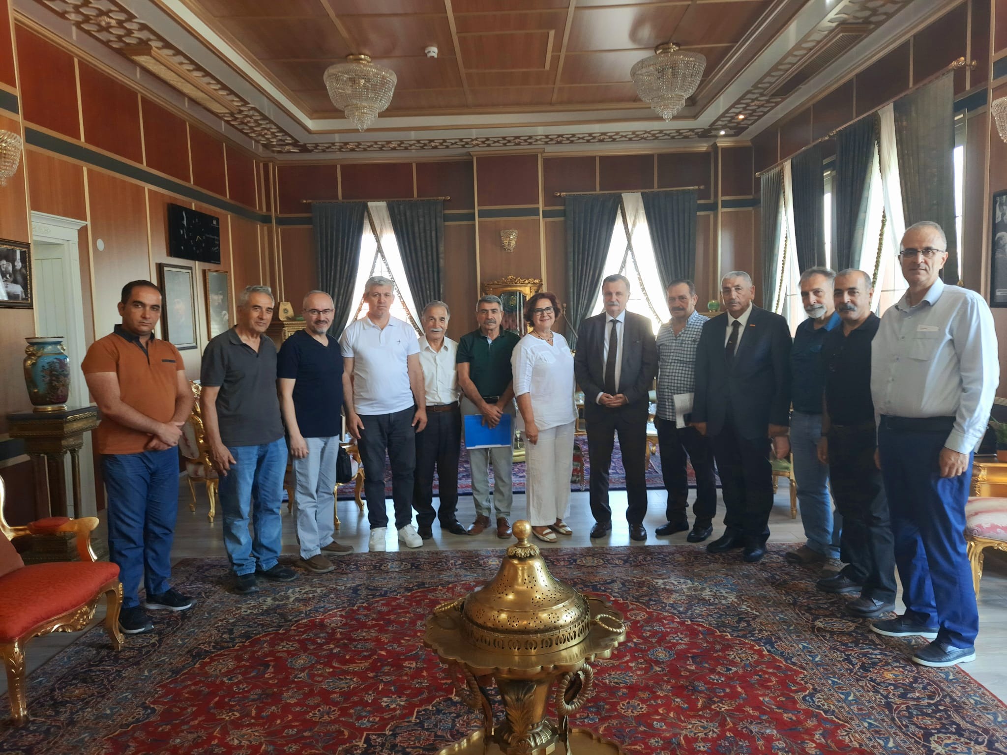 Toplantı sonrası, Yunusemre Kent Konseyi yürütme kurulu üyeleri, Yunusemre Belediye Başkanı Semih Balaban’ ı makamında ziyaret etti.